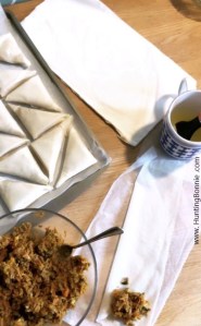 • Coller la pâte avec un peu d’eau et déposer les samoussas sur une plaque de four recouverte de papier cuisson.