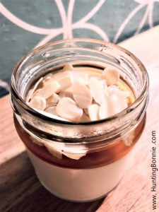 • Verser la préparation dans des verrines, déposer 1 cs de miel puis 1 CS d’amandes torréfiées par verrine.