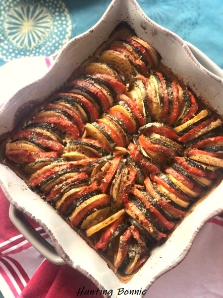 Le Tian, c’est vraiment le plat génial pour passer tous les légumes du jardin (ou du maraicher qui joue avec mes nerfs quand il me remplie trop le panier) sans trop se fatiguer 🙈😂