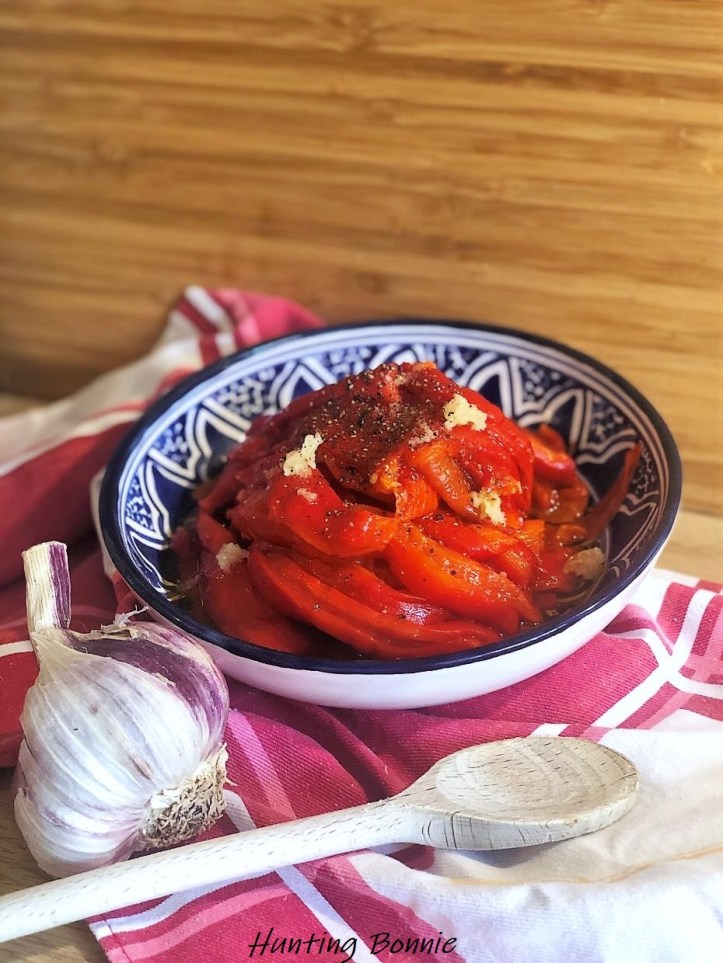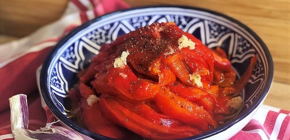 POIVRONS RÔTIS MARINÉS À L’AIL ET AU BASILIC