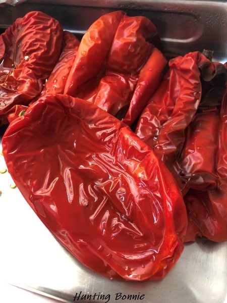 Bien que chacun ait sa méthode (micro-ondes, chalumeau, etc.), pour cette recette, c’est super simple : les poivrons sont rôtis avec leurs peaux. Quand ils sortent du four, je les recouvre (papier aluminium, film étirable, etc.) afin de créer une vapeur que va dégager les poivrons et qui va aider la peau à se décoller toute seule. C’est magique !