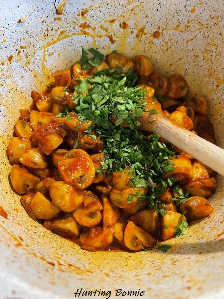 La plupart des recettes que je retrouve propose des champignons en boite (je ne suis pas contre l’idée, mais le gout est tout de même bien différent !)