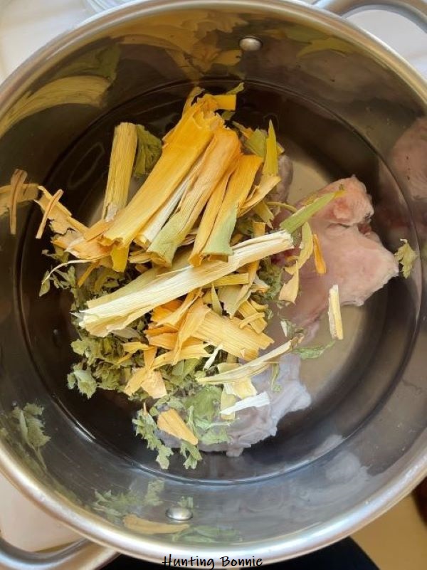 - Optionnel : si vous souhaitez de la gélatine, placez les os dans une casserole avec un bouquet garni et laisser cuire en réduction 1h à gros bouillons, filtrer, faite fondre la feuille de gélatine préalablement ramollie dans de l’eau froide, laisser tiédir.