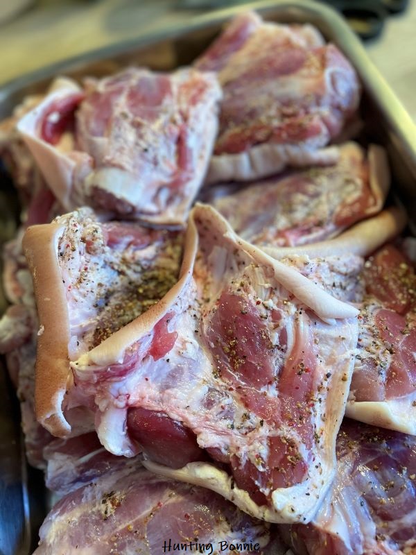 - Massez les morceaux de jarrets avec le sel, le poivre et les baies.