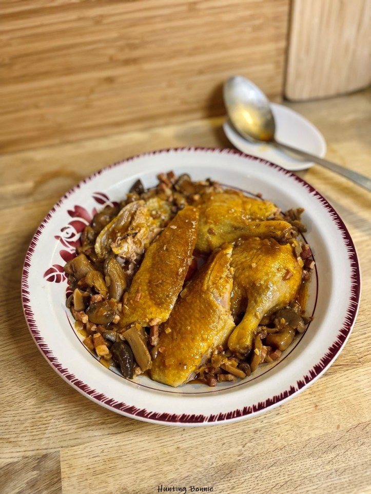 Les volailles ont toujours la cote dès qu’il s’agit de passer un bon moment à table. J’adore le moment de découpe de la volaille, c’est un spectacle un peu rétro que j’affectionne : Une grande planche en bois, un bon couteau et bon courage à l’homme autour de la table que j’ai choisi pour la découpe ! (Mon Clyde est particulièrement fort 🥰).