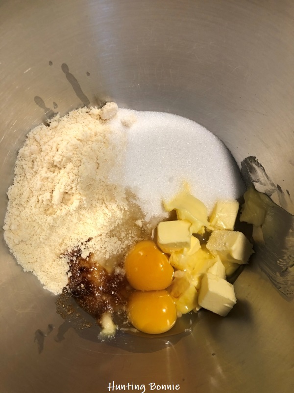 - Ajoutez la poudre d’amande, la farine, l’arôme, et mélangez à nouveau.