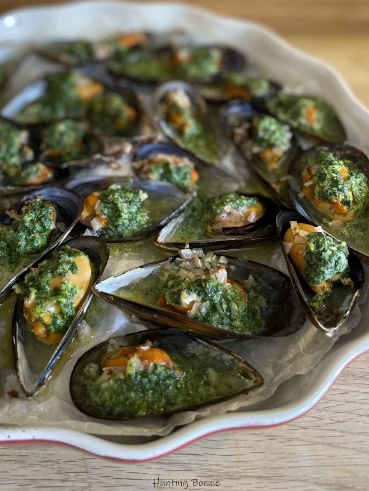 - Placez les moules sous le grill du four pendant quelques minutes, jusqu’à ce que le beurre persillé soit légèrement doré. Environ 5 min, mais surveillez !