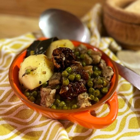 FRICASSÉE DE PORC ET PETITS POIS À LA FORESTIÈRE