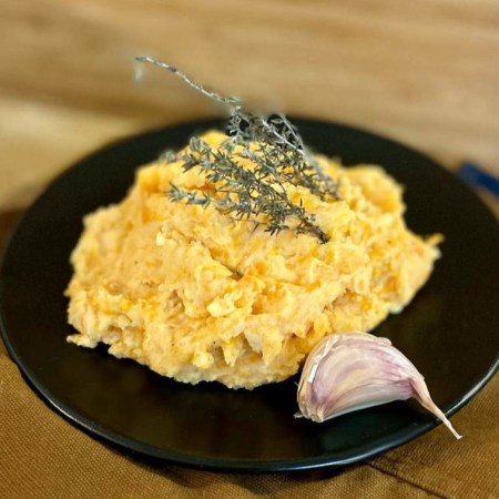 Écrasé de courge et pomme de terre à l’ail et au thym